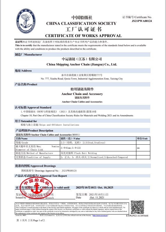 率先開發M4級錨鏈、 R7/R8級系泊鏈,打造完整而先進的產品體系。